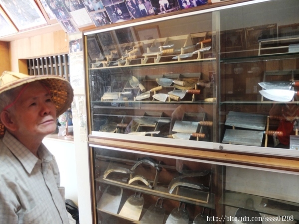 剛看見老闆李一男老師傅,他頭戴著斗笠,站在門口專心看著報紙,我們禮貌性詢問他能不能參觀,而他立刻答應,還笑著歡迎我們並開始認真介紹起自家刀具,走進櫃台拿出不同類型刀具展示,這些都是老師傅和他的兒子日夜磨製出來的心血,小心翼翼的拿起來感受,仔細端看好一會兒,我發現到這裡的每一把刀都好細緻。