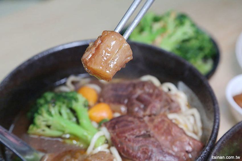 使用牛條(就是我們常說的牛肋條)精燉後入麵,我特別喜歡牛肋條的口感,肋條肉中帶筋膜,帶些許油脂吃來軟嫩又有嚼勁,肉質的香氣也特別香,滷製也相當入味,大推!!