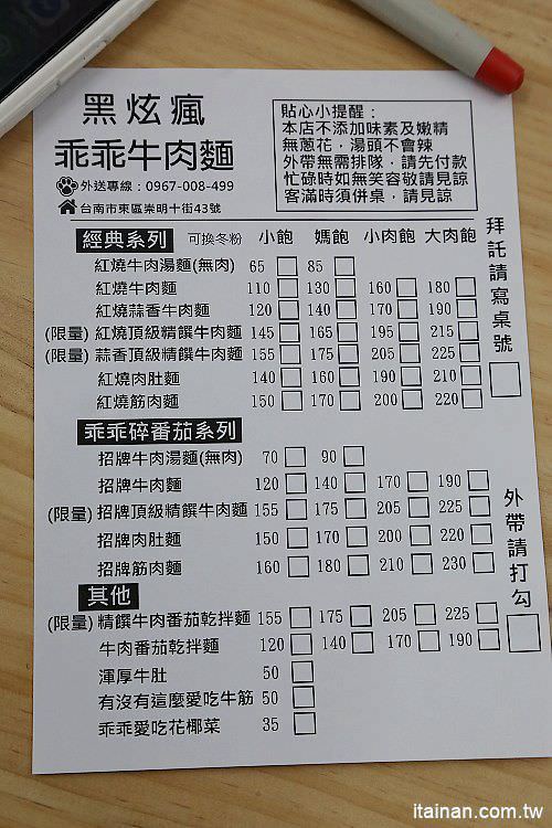 黑炫瘋乖乖牛肉麵的菜單