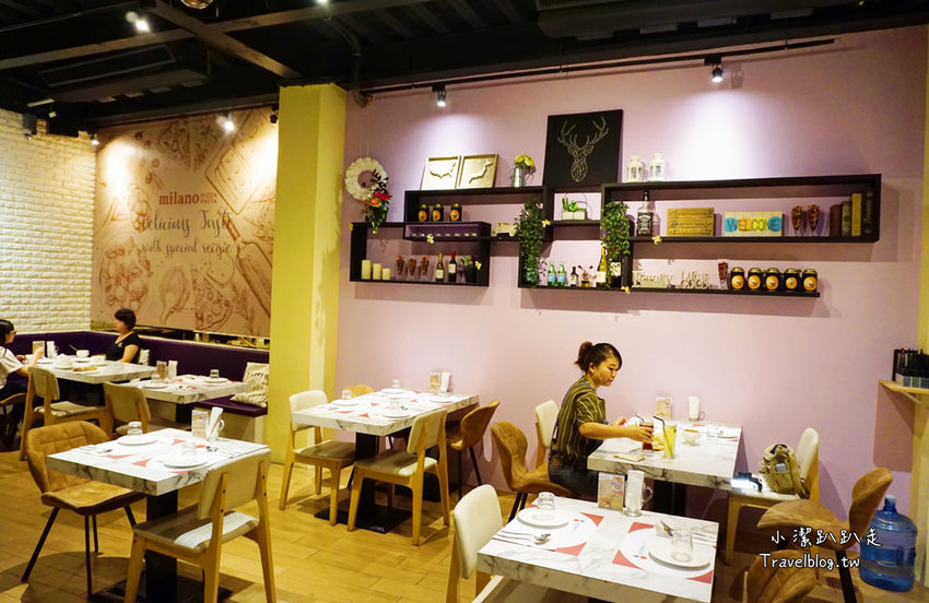彰化美食,員林聚餐餐廳,Milano米蘭街義式小館, 餐點菜色選項多,平價又份量足!獨家手作七種義大利麵條,自家製作餅皮、麵條、披薩跟餡料、餐前麵包都是店家用心準備。員林店限定,早午餐開賣啦!限平日全天候供應,免費續杯咖啡、紅茶、桔茶,推薦必點!墨西哥創意烙烙餅燻雞、醬燒鮮魷義大利麵,還有午茶限定舒芙蕾鬆餅,甜點控快來!浪漫倆人約會、閨蜜午茶,很適合辦活動聚會包場!