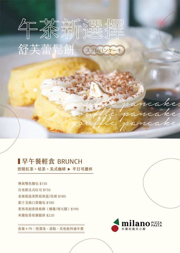 》員林Milano米蘭街義式小館 早午餐、下午茶菜單
