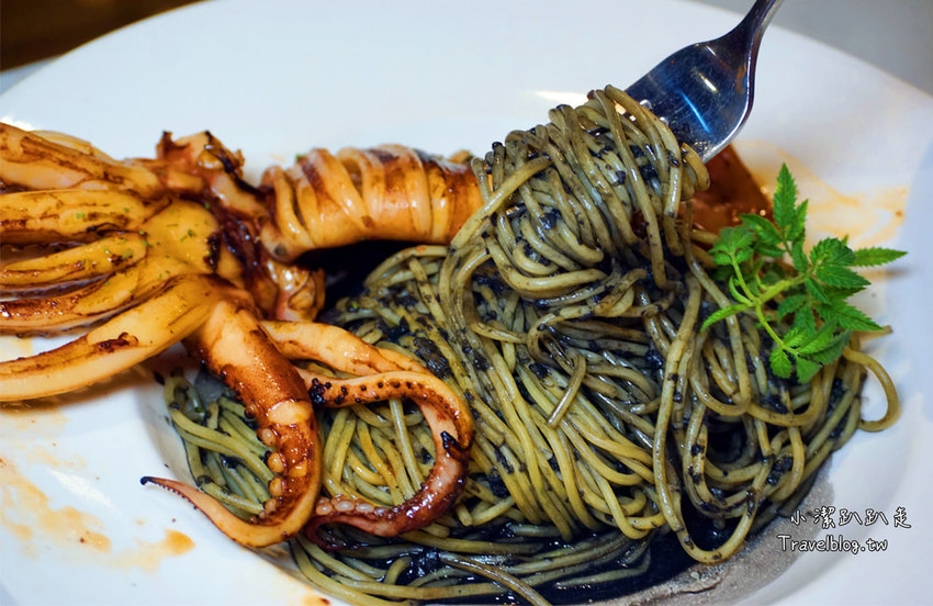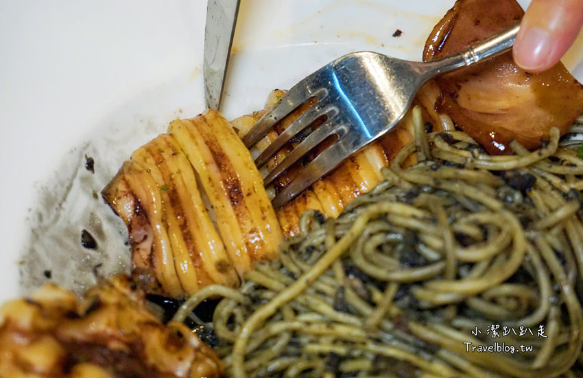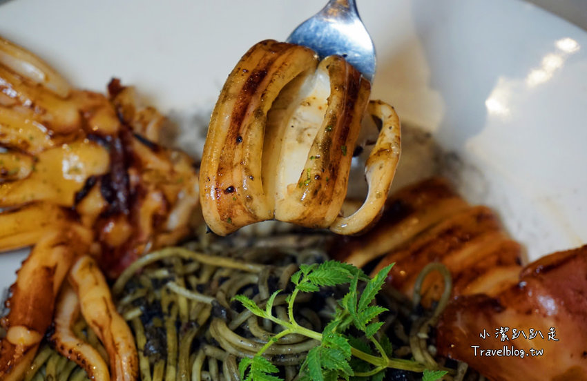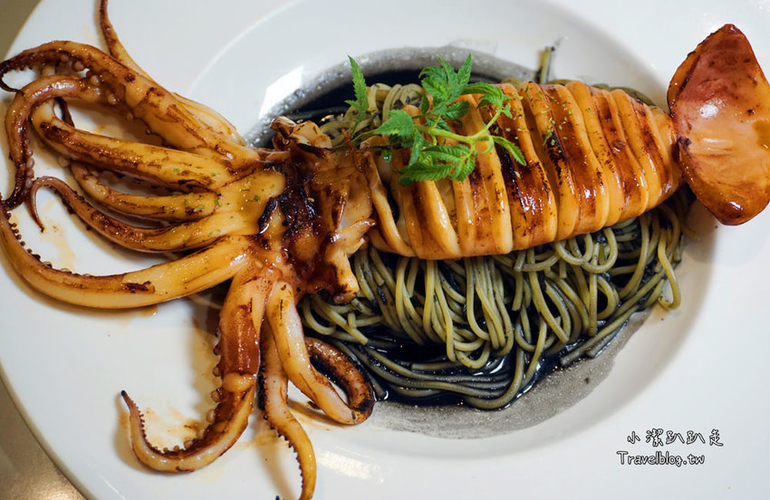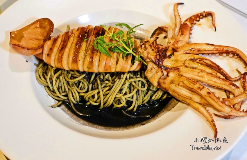 OHOH~嚐嚐鮮!很可以IG拍照打卡!這次還是隻巨大墨魚舖在麵條上方一整個給的很囂張!