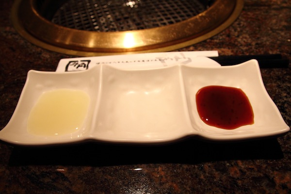 在燒肉醬料的選擇上,牛角提供鹽、燒肉醬油與檸檬汁,檸檬汁是已經榨好放在瓶中的,省去了榨汁的麻煩。