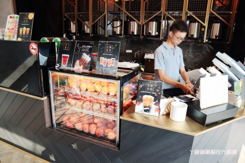 店員說,黑到閃亮亮的珍珠會放在保溫鍋裡以維持口感,話說這珍珠波霸又大又有嚼勁,小朋友喝要多多留意喔!
