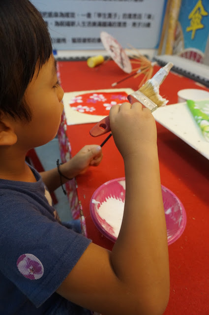 內容有製藥,拓印,以及客家小攤位,利用互動讓孩子跟客家文化更親近,櫃枱還提供簡單的紙傘DIY ,可以在現場著色,回家黏貼完成!