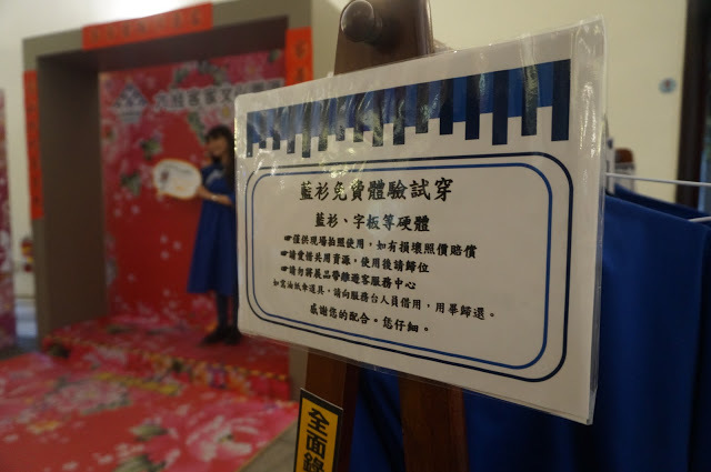 園區內很多設施,藍杉免費試穿,一起來體驗客家傳統服飾文化!