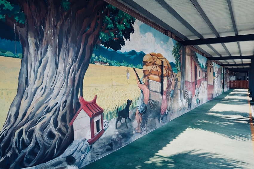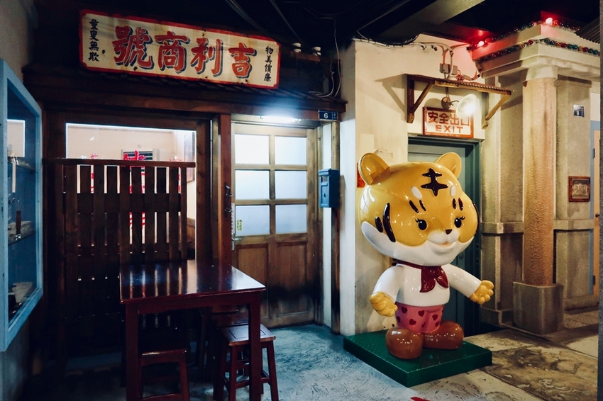 在虎牌米粉的戶外園區,設有可愛裝置藝術的老虎及3D時光隧道的懷舊彩繪牆,可以在人多需要等候排隊集合買票時來拍照打卡。