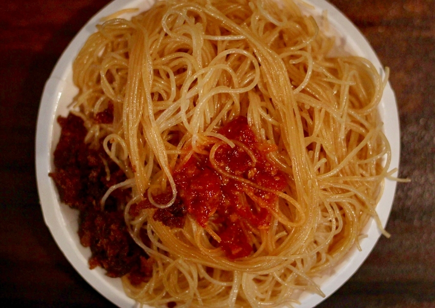 逛了一大圈之後,肚子餓了可以到「阿嬌米粉攤」來吃超好吃的古早味米粉,米粉可以無限吃,吃到飽;但超大魚丸湯就可是要付費喔!