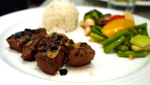 一旁的蔬菜像是烤蔬菜