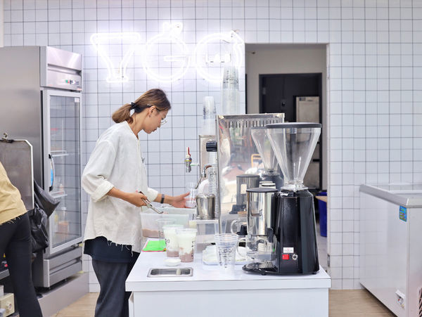 這家在SOGO百貨旁邊,鄰近誠品綠園道商圈的飲料店,在IG景點打卡上超級熱門,外觀純白的實驗室風格相當有質感
