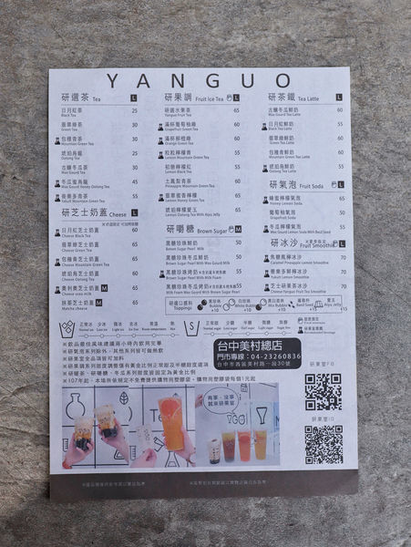 飲品原茶最低25元起,在這個競爭激烈戰區,算是相當實惠的價位。另外還有芝士奶蓋、氣泡飲以及研果室最招牌的新鮮水果系列,而配料除了必備的黑珍珠,也有白珍珠、黑白混珠、羅勒籽、愛玉等,選擇跟配搭上頗為豐富呢。