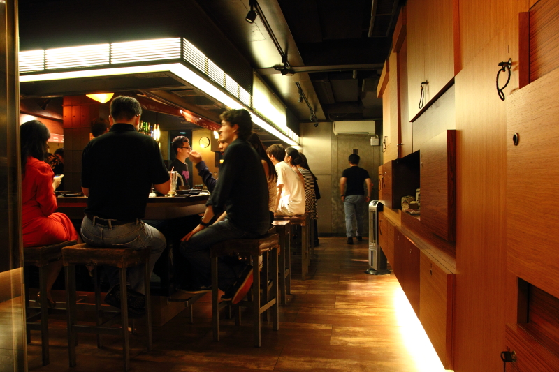 其實吧台的設計與胡同燒肉系列的設計有點類似,桌上兩個餐具,一淺碟與湯碗。湯碗可擠入檸檬汁作為沾料用。