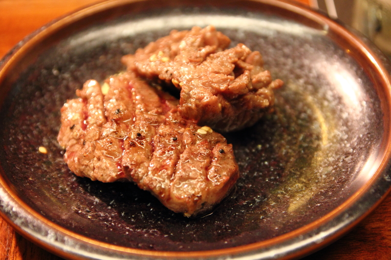 大腕的牛舌品質相當好,大概是目前吃過的牛舌數一數二的,不僅口感彈牙鮮嫩,更難得的是肉汁香甜,搭配著鹽蔥提味,更顯甜美,而沾些檸檬汁吃,又更能提出其肉質本身的甜味,十分推薦大腕的牛舌。