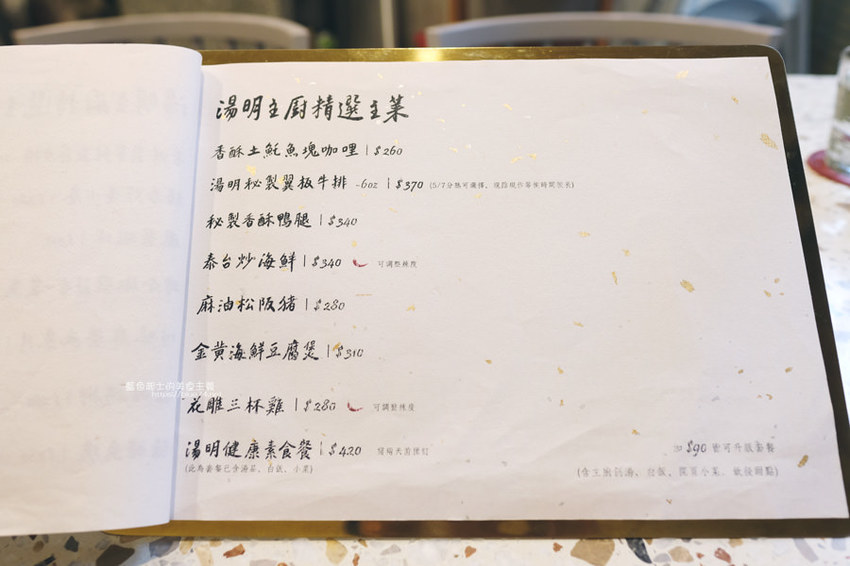 加90元,升級套餐有主廚例湯、白飯、開胃小菜、飯後甜點