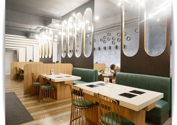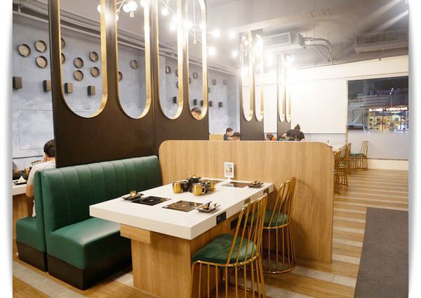 環境很優雅很難想像居然是火鍋店,金色滾邊椅子與綠色沙發搭在一起真是美。