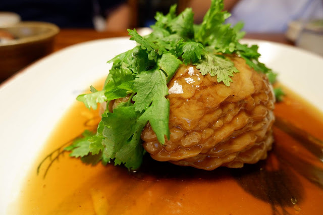 這外層堆疊片狀苦瓜的封肉造型,老闆將其剖開後再協助擺盤,燉得軟爛的苦瓜雖然還是有淡淡苦味,隨之而來的大部分是醬汁的鹹甜味道,真的是如題的苦盡甘來呢!