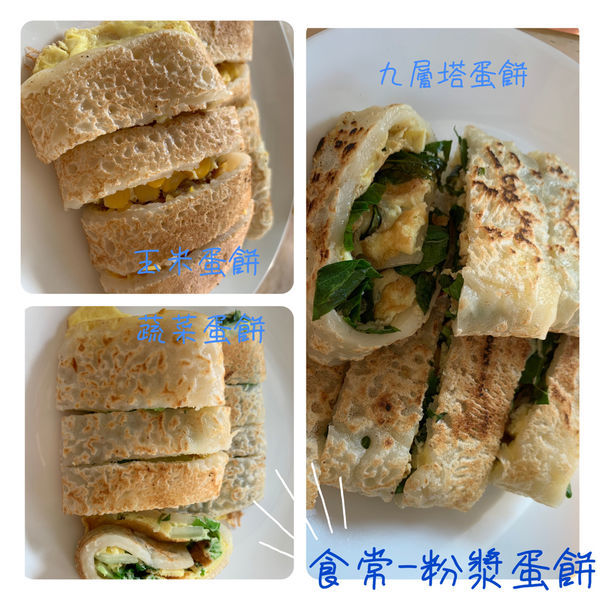 隔天跟先生又跑去吃一次,又點了九層塔蛋餅、玉米蛋餅跟蔬菜蛋餅,若想要吃焦焦的口感,可以跟店家提醒喔!