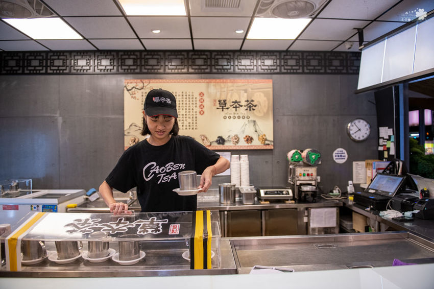 圖|店內斗大的看板述說著草本茶的品牌故事。