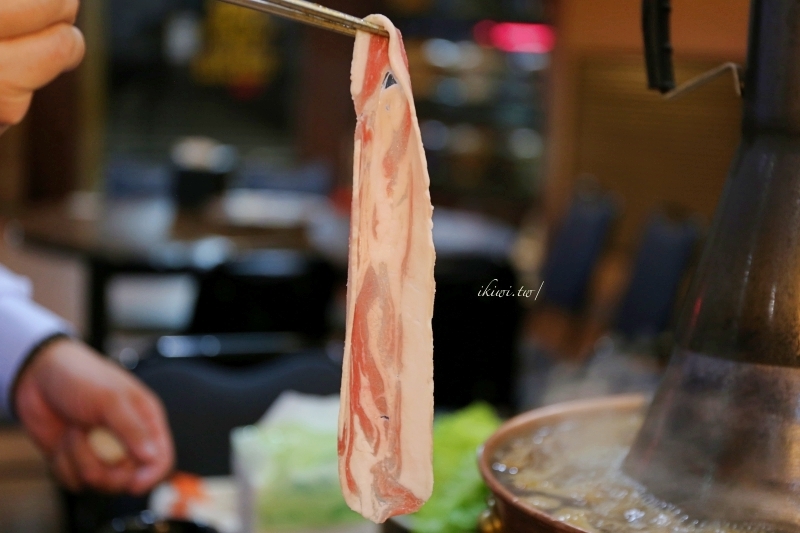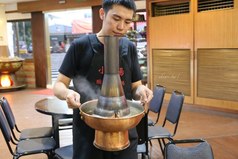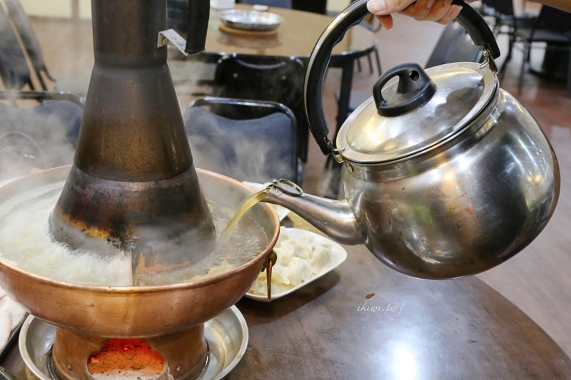 小瀋陽炭火酸菜白肉鍋以炭火料理聞名,一端出就感覺到銅鍋的滾燙,等端上桌後就可以將食物放入滾了食用。
