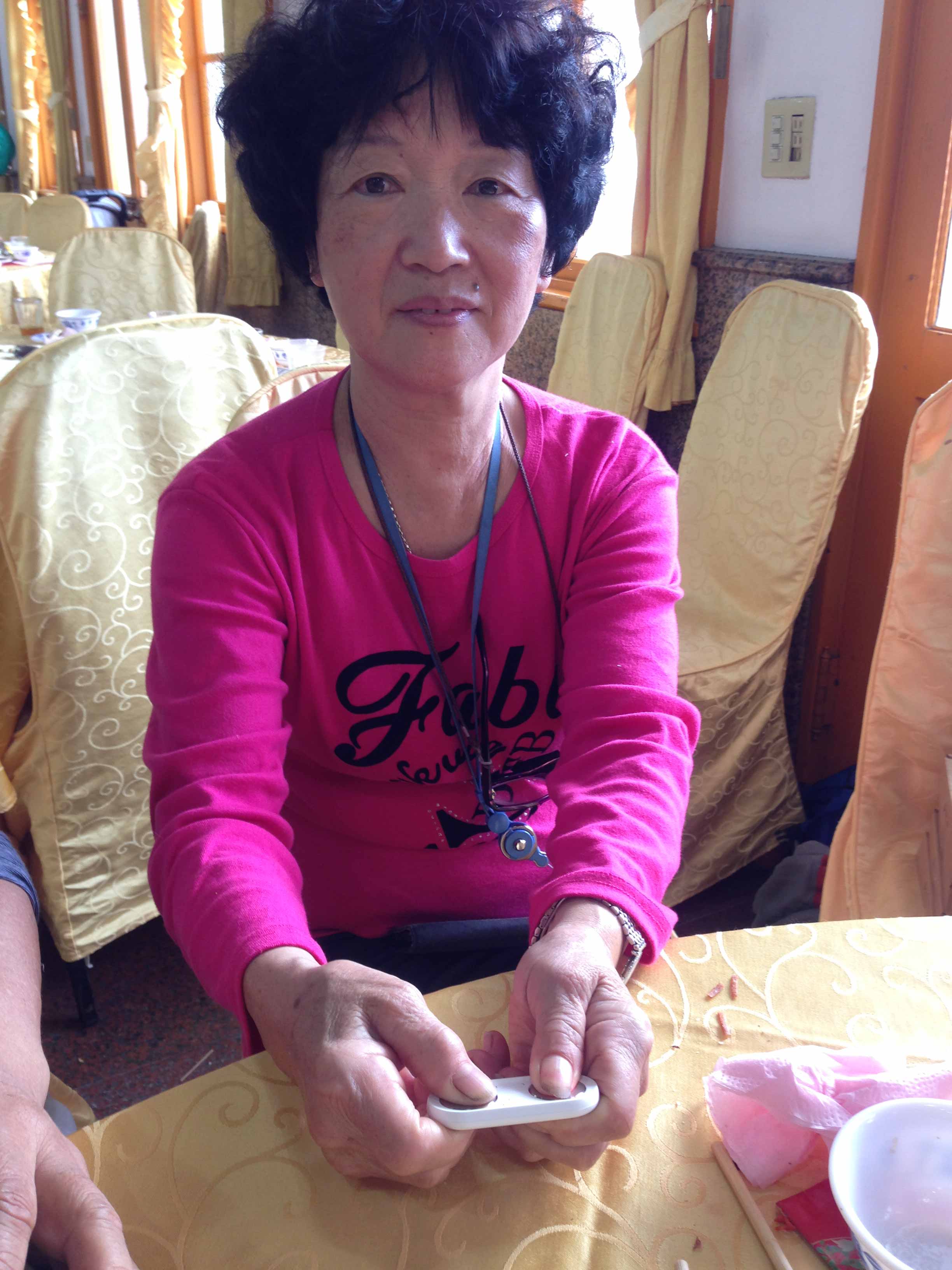 假日跟老人家一起吃飯,吃飯前先去爬山,到餐廳先量血壓,每個人都量一遍,從包包拿出血壓機紀錄測量情形,都不用再拿紙紀錄,真方便。