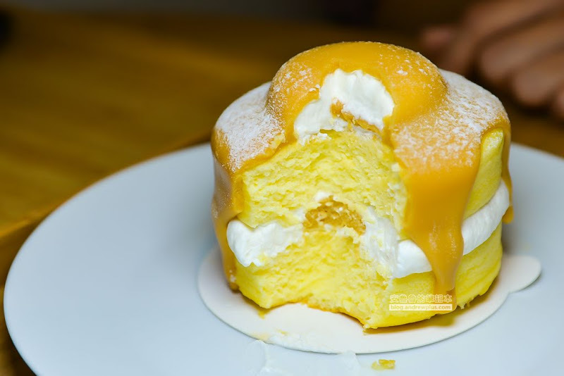 切下去的時候會聽到像是氣泡破裂的聲響,感覺像舒芙蕾般的水嫩,但是比起舒芙蕾的口感厚實許多。巴黎燒燉布蕾入口是濕潤口感,清爽蛋香味在嘴裡蔓延,中間餡料是燉煮布蕾加上一層鮮奶油,吃起有彈性,味道香甜,甜味其實滿強的,螞蟻人會喜歡,卻甜而不膩,會讓人一口接一口