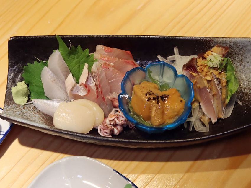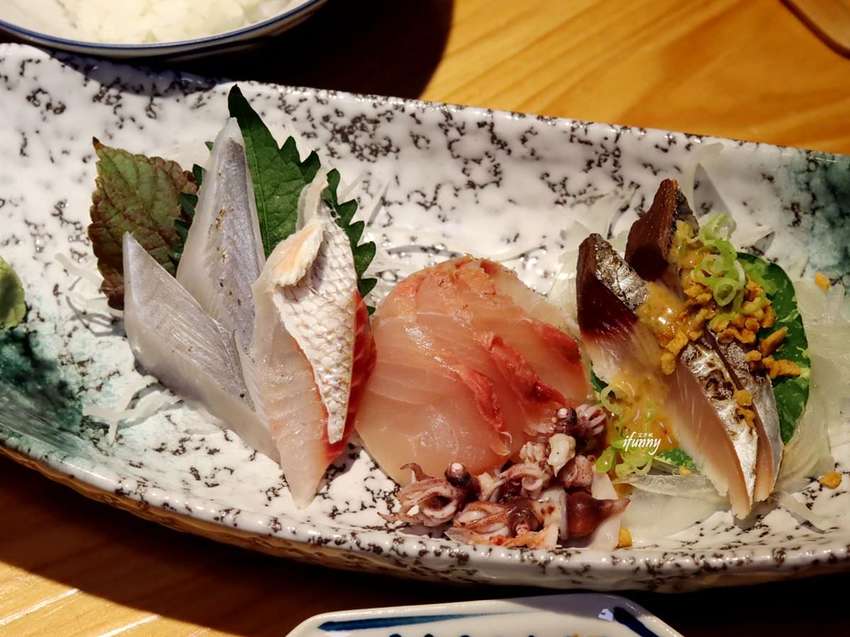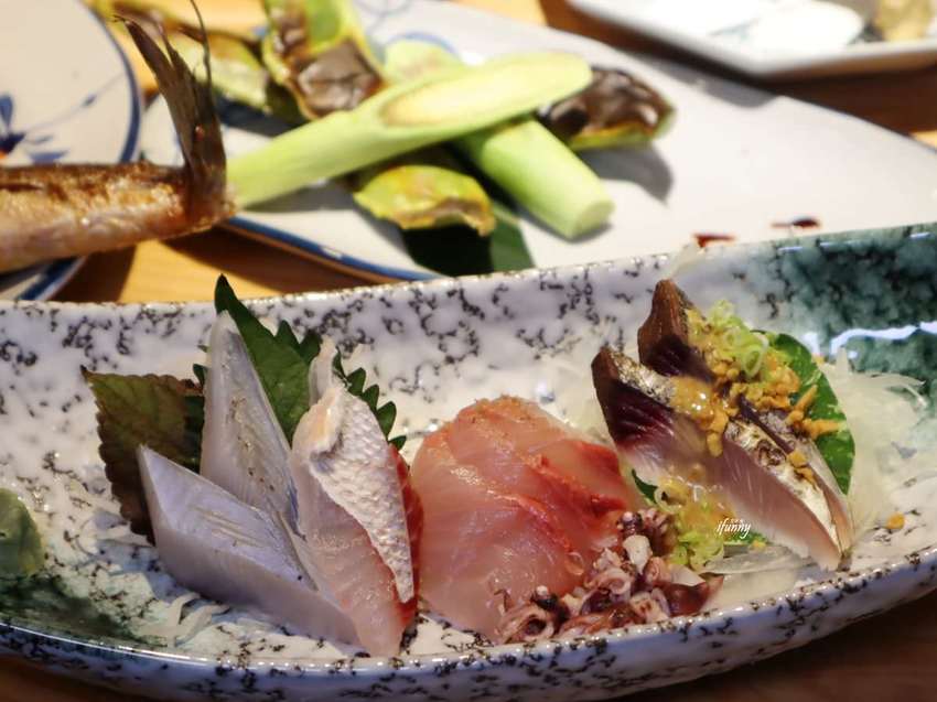 這天的生魚片是煙仔虎,煙仔虎是屬鰹魚的一種,天氣越涼越是油脂豐美呢!佐上店家自製的柚子胡麻醬,更顯生魚的鮮美。