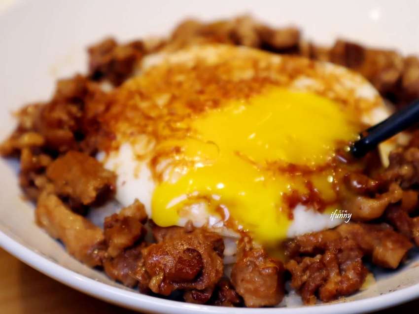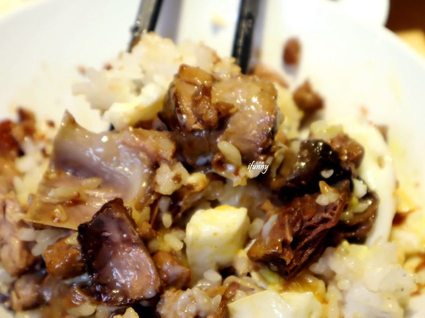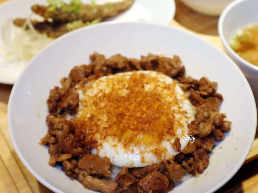 而這個魚滷肉是採黑鮪魚加上黑毛豬腿肉及海豬腳熬製而成,而略帶魚骨的海豬腳,正是黑鮪魚的尾巴呢!攪拌後整個滷香四溢,吃下後嘴唇上盡是豐富的膠原蛋白,不肥膩的魚滷飯真是越吃越涮嘴!