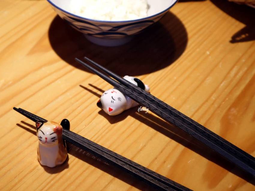漁當家的餐具都是放在桌面上自取,備有各式各樣可愛的筷架,讓客人自行選擇,超萌的!