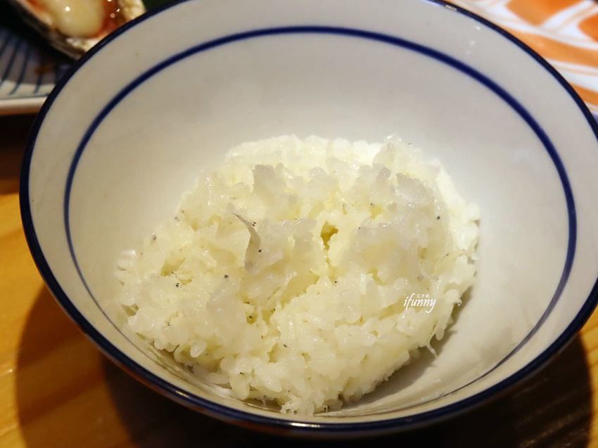 除了少見的白鯧刺身之外,把魚頭煮進味噌湯中,也是首見。白鯧魚頭肉很細緻,也令味噌湯多了豐潤滋味。
