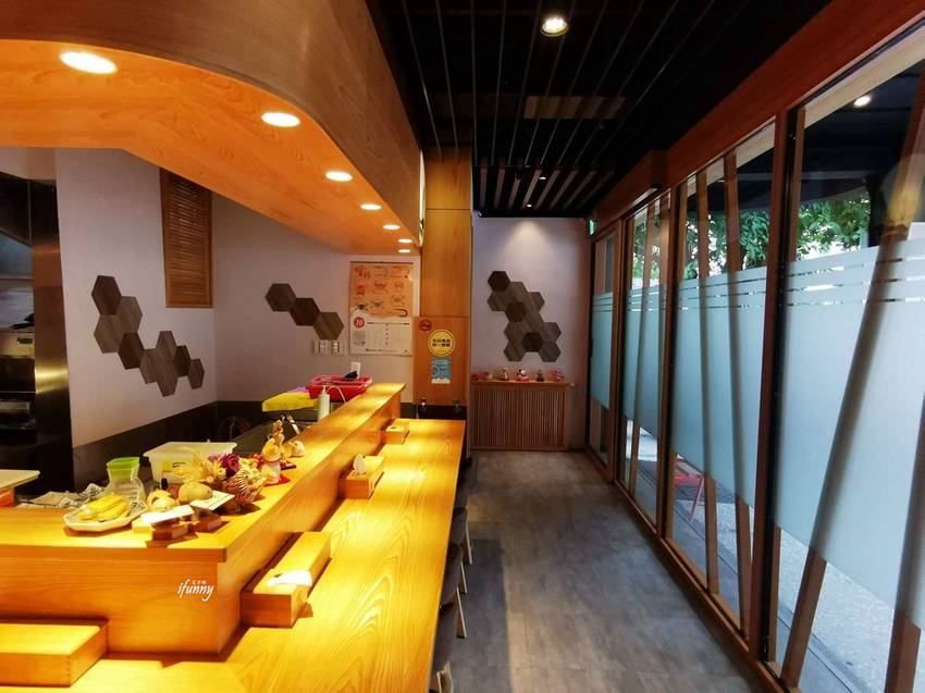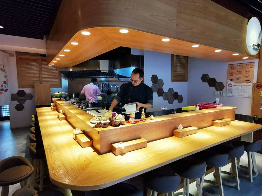走進漁當家的店內,全部座位採板前方式,以大量木頭呈現出日式簡約優雅的質感。