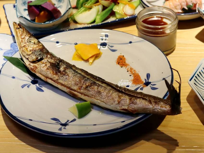 尖梭魚的魚刺很大也很好挑,肉質細緻鮮甜,單吃就很美味,也可沾點七味粉增加風味。