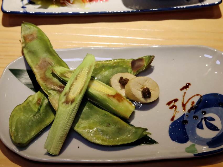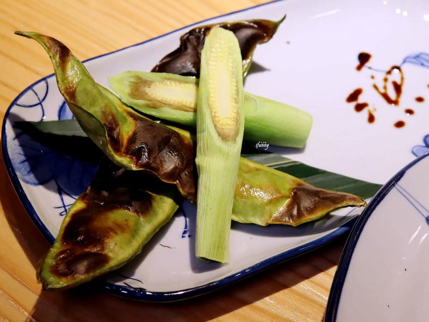 這天的是鹽烤紅鬚玉米筍、皇帝豆。