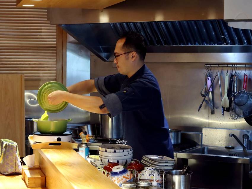 坐在板前,就是一個搖滾區的概念,開放式的廚房,讓大家在任何一個角落都可以見到主廚廚藝現場秀。