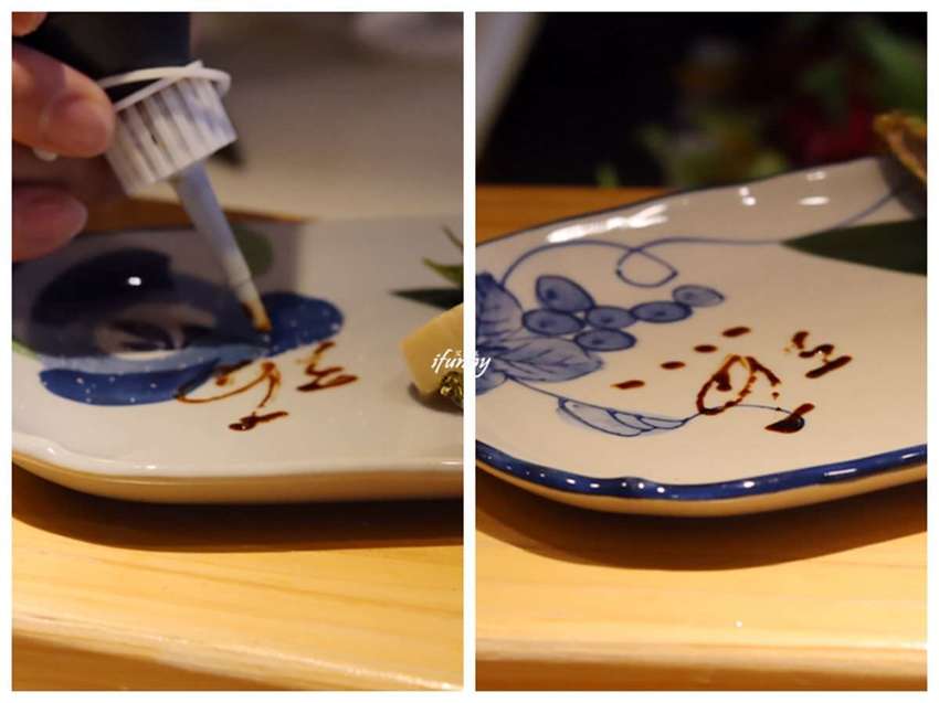 很有才的老闆,還用醬油在盤子上寫上了漁字。