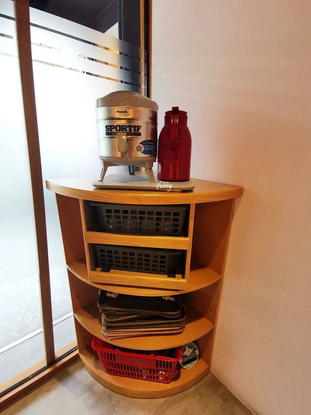 漁當家提供茶水無限供應,這天有熱的烏龍茶及白開水。另外也備有置物籃供客人自行取用。