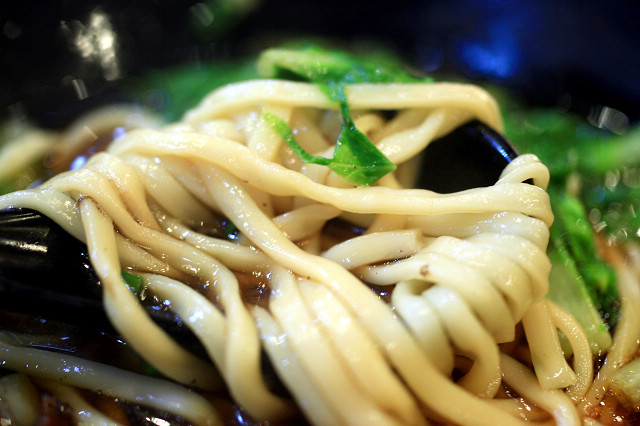 採用的麵條倒是很不錯,屬於很有韌性且有彈性的麵條,不會因為煮久就顯得糊糊爛爛的,有烏龍麵般的韌度。