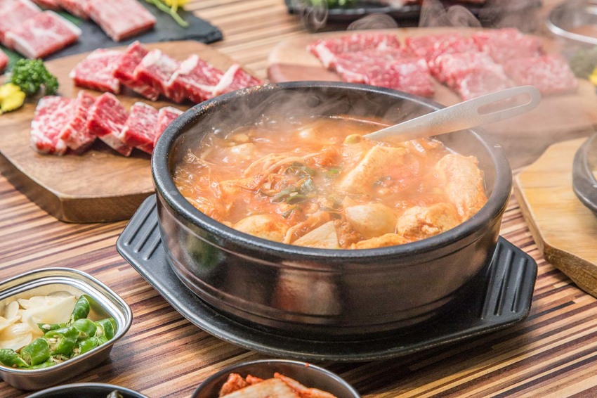 熱呼呼的泡菜湯冬天喝最過癮了,泡菜事先炒製過加入高湯一起烹煮,酸味圓潤清爽,裡面還加了特製的豆腐及超大蛤蠣,鮮味滿點!