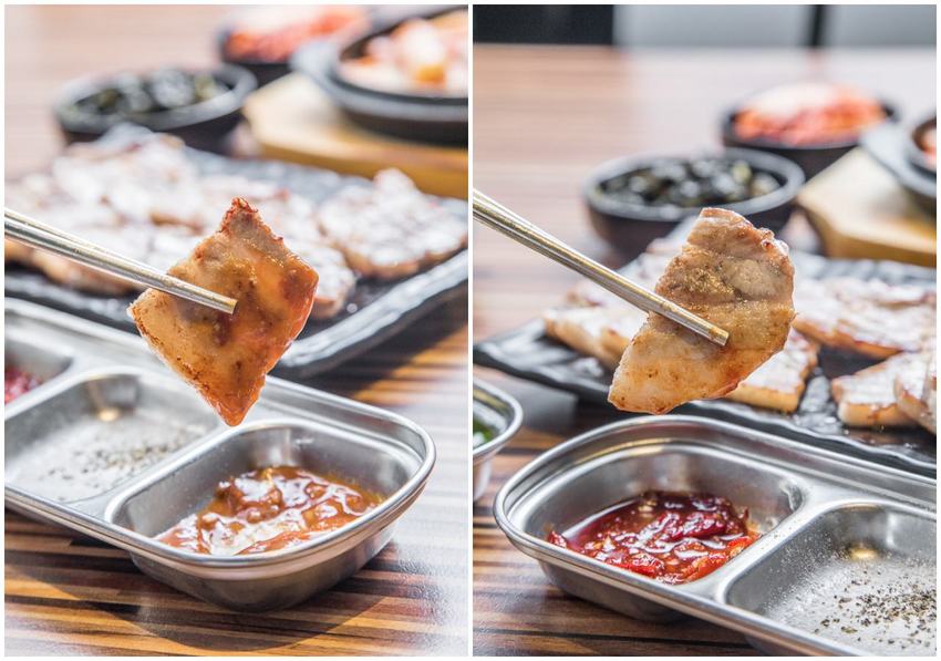 先吃原味,因為經過熟成,五花肉吃起來不僅沒有豬腥味,瘦肉的部分也很軟嫩,肥肉則是香甜清爽,超好吃的五花肉,吃完原味可以試著沾點特製的燒肉醬或是焦糖辣椒,提升肉質的味道深度