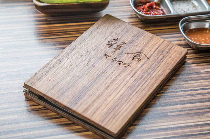 韓舍熟成肉韓式烤肉的菜單,是用木質做封面相當有質感,菜單不定時會更動,從雙人到四人套餐都有,低消是每人至少一份肉類->點我看完整版菜單