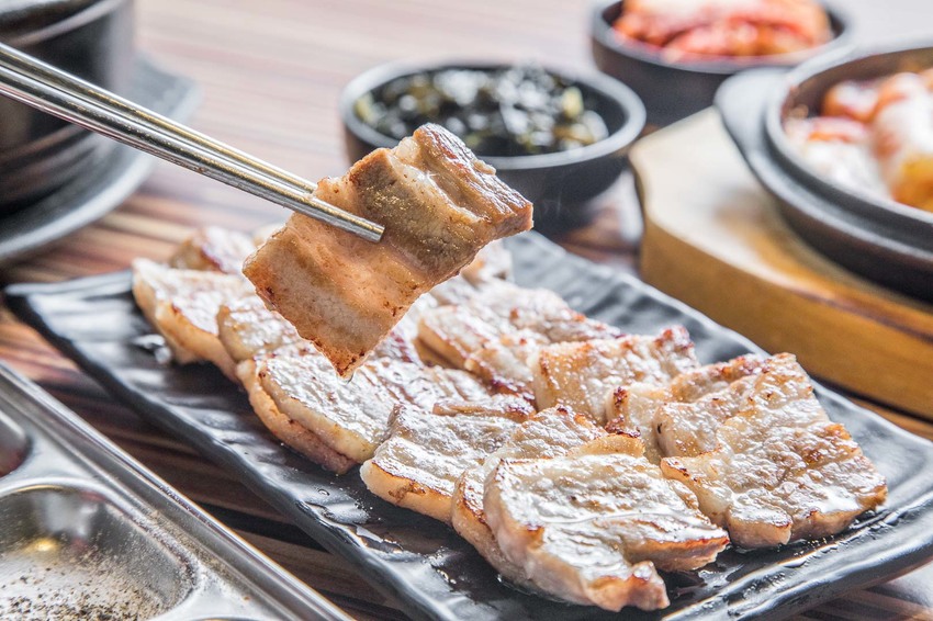 吃韓式燒肉怎麼可以不點五花肉,強力推薦單點大份量足足六大片的美國紅櫻豚五花!同樣經過21天熟成,比起一般五花肉肉色更加紅豔