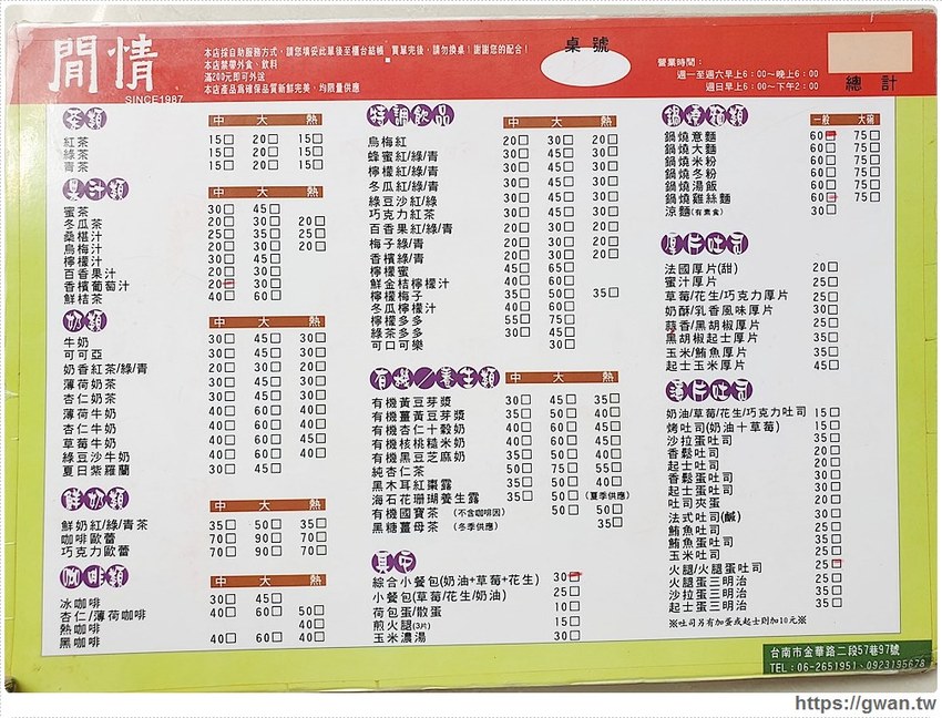 菜單上品項不少耶!除了飲料跟鍋燒外,還有吐司、厚片、小餐包…..等等
