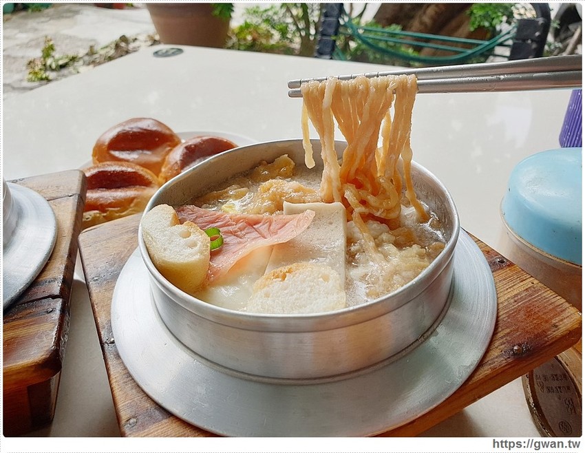閒情鍋燒意麵比較像傳統家庭式的早餐,一進來發現除了店內用餐空間,走廊上也規劃了座位區,大家都躲在樹蔭下享用美食。這裡環境很清幽、步調慢慢的,感覺像個世外桃源!雖然夏日裡就算樹蔭遮著還是蠻熱的,但卻有種說不出的懷舊氛圍