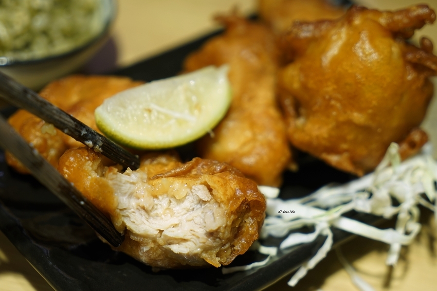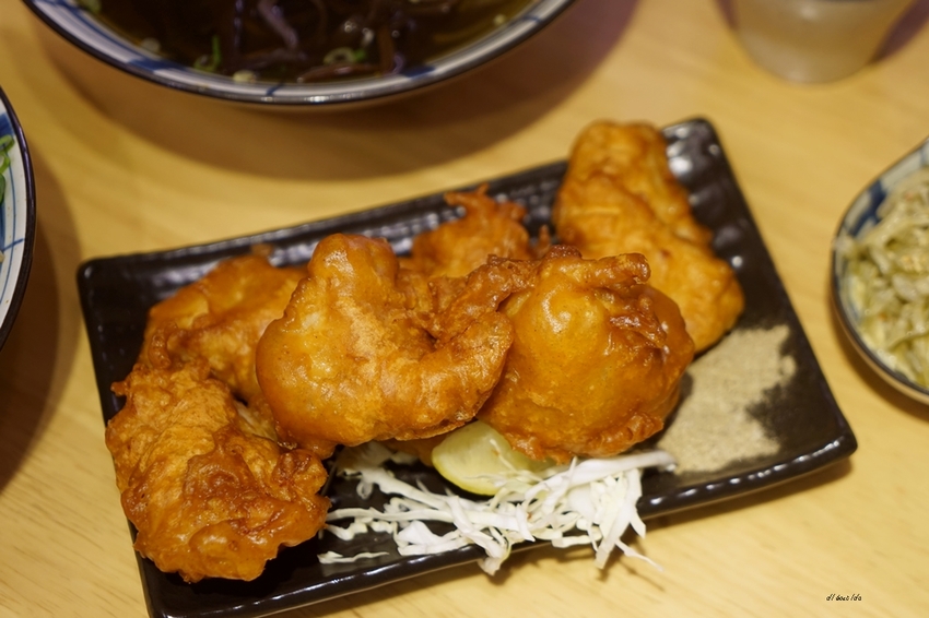 店員說唐楊炸雞是他們家的招牌小菜,商業午餐的雙人套餐需+78元享用(原單點128元)。山禾堂的唐揚炸雞外層炸衣和我以前吃過得比較不同,偏軟一點比較沒有酥脆感,不過內裡雞腿肉挺鮮嫩多汁的。