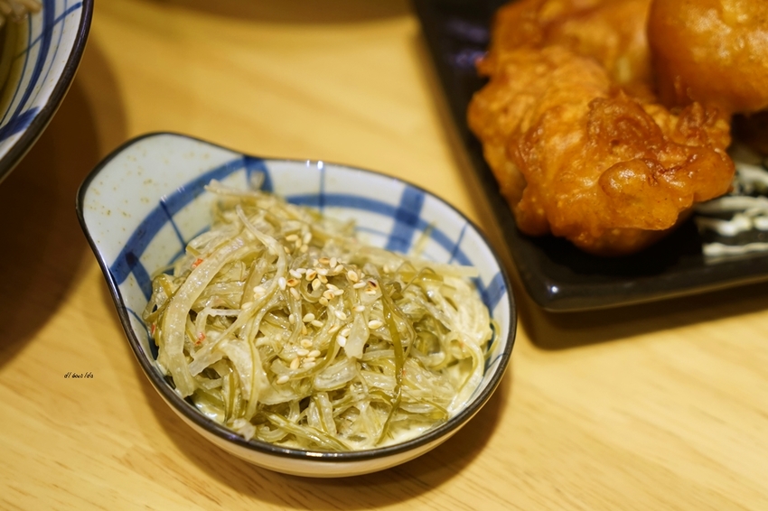 海帶芽絲有著黃金泡菜的香濃重口味與微辣,吃拉麵搭配一點涼爽的小菜很合搭。