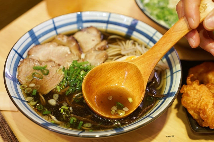 拉麵湯頭有白豚、赤豚、蔥豚、黑豚、野菜等風味,湯頭醬汁鹹度可以選擇淡、普通、濃、特濃。喜歡吃肉的,可以加點叉燒激增+50元。