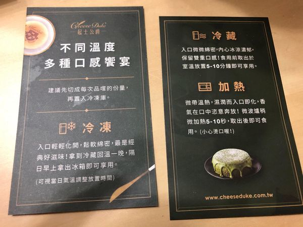 這兩款蛋糕在不同的溫度下,有不同的口感,加熱或冷凍品嚐皆各有風味。