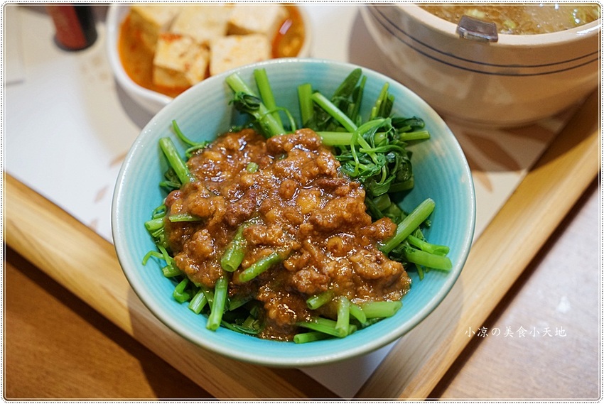 燙青菜鮮脆、多了肉燥帶鹹香~