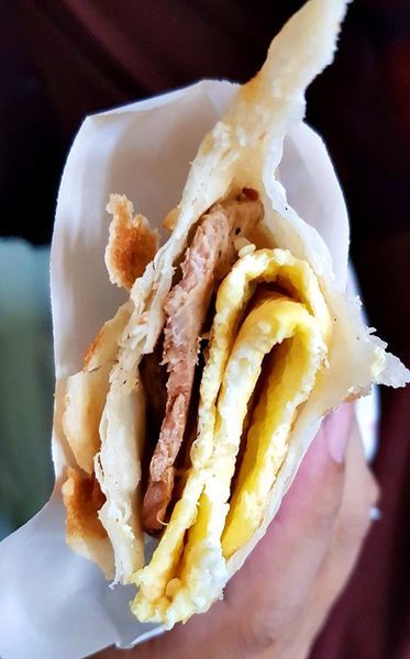 燒餅+豬排+葱蛋整個搭在一起的口感很讚耶~好好吃喔!