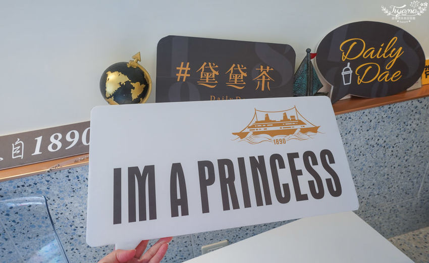 「黛黛茶DailyDae」分為五個品項的茶飲:皇室極選單品、花果公主紅茶、拿鐵王子紅茶、經典風味、經典厚奶。