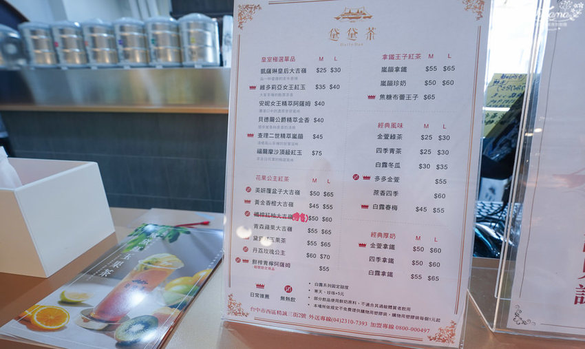 如此華麗質感的品牌形象,本以為價格也會很高,想不到和一般手搖茶飲的價格差不多,除了福爾摩沙頂級紅玉的較為高檔茶葉外,最低飲品$25就喝得到,也有外送服務。